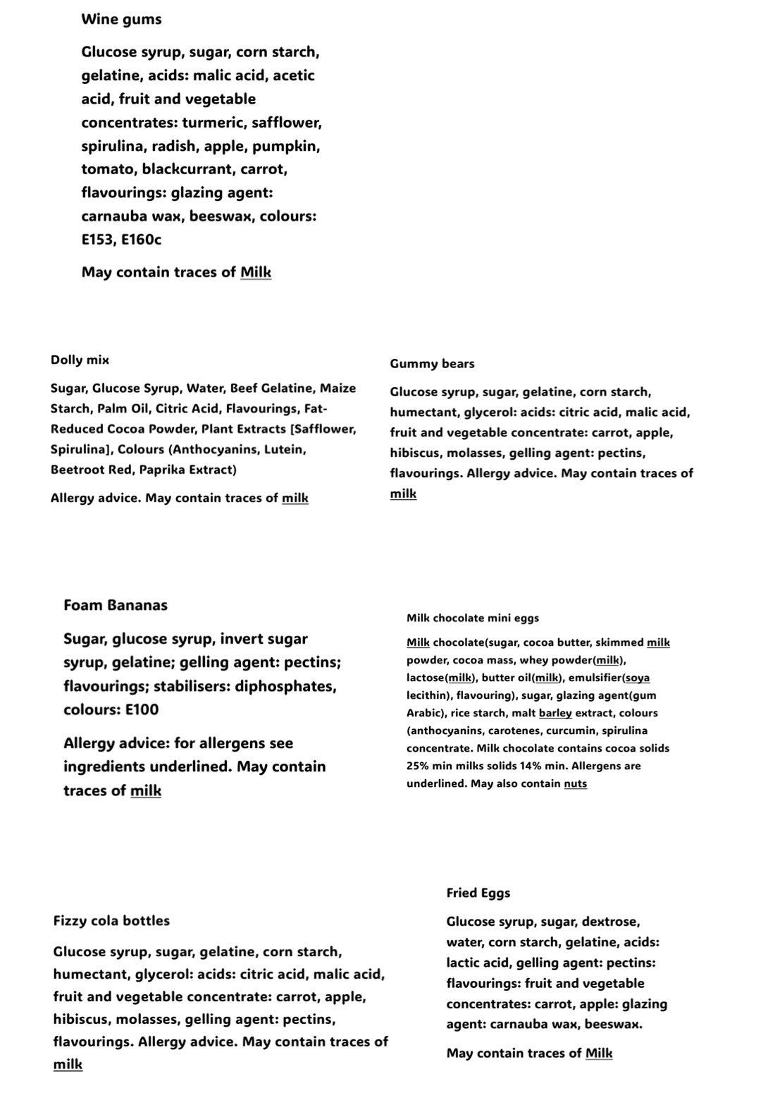 -Lemon Meringue- Allergens: contain: Wheat, Milk, Eggs. May contain nuts